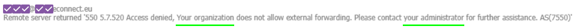 Een bij jouw eigen organisatie ingestelde blokkade zorgt ervoor dat e-mail niet kan worden doorgestuurd. Los dit zelf op, eventueel met behulp van iemand van je IT-afdeling.