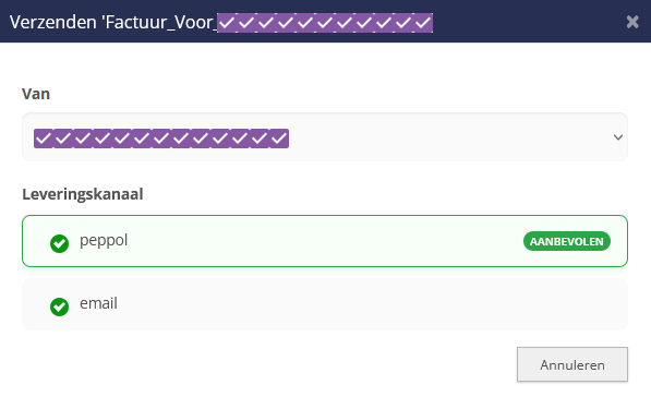 Je hoeft hier in principe niets in te vullen. eConnect selecteert namelijk zelf de meest optimale aflevermethode. Wanneer de ontvanger niet bereikbaar is in ons netwerk of in een van de aangesloten netwerken, dan vragen we je om een e-mailadres in te vullen. De factuur wordt dan afgeleverd per e-mail.