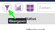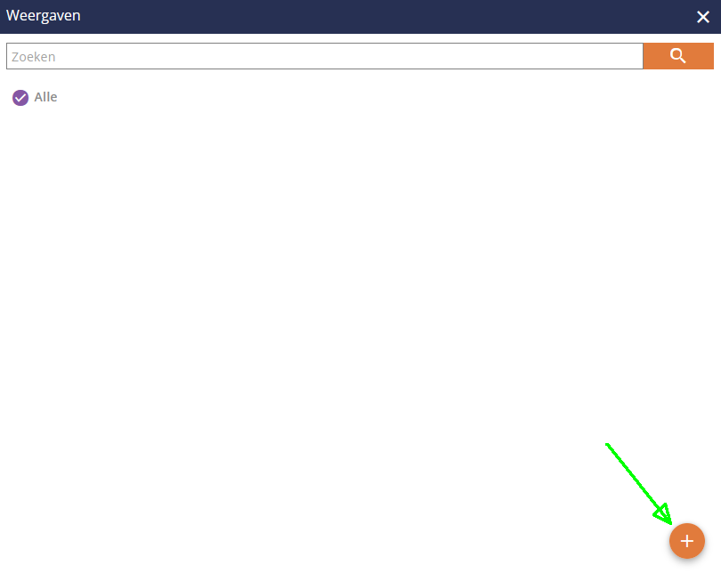 Je kunt zelf Weergaven/filters aanmaken en aanpassen, opslaan voor later gebruik en/of delen met je collega's. Klik daarvoor op het trechter-icoontje naast het zoekveld en vervolgens op de oranje bol met het plusteken